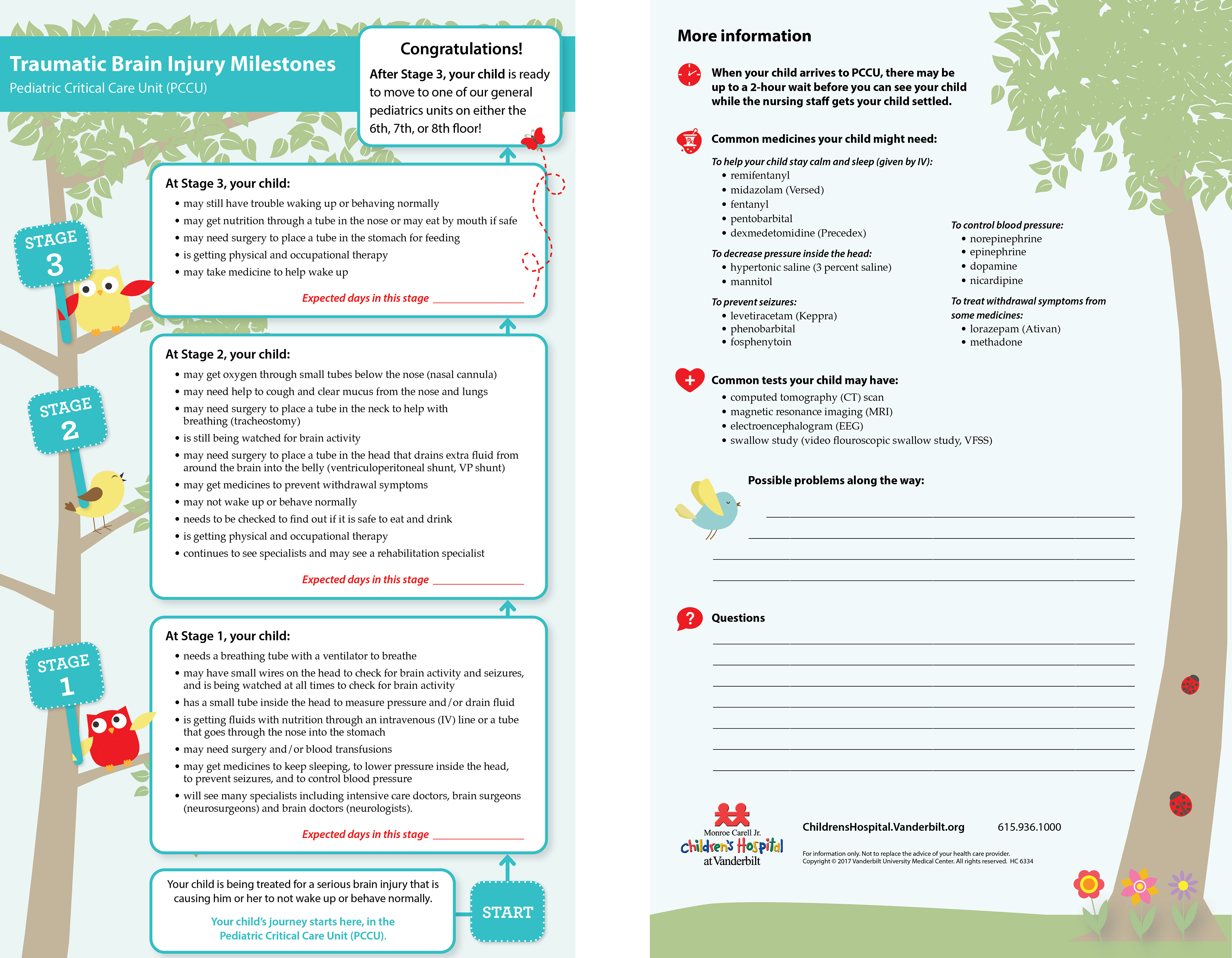Worksheet for parents, and children as they are able, to mark milestones, know what to expect, and note questions for and answers from their child's clinicians.